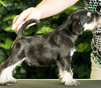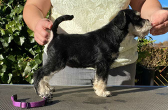 Daily ist unsere dritte im Bunde und ist zur Bereicherung unserer Zucht gedacht. Unserem „Zwergschnauzer-Profi“ Margit (die Mitbesitzerin ist) haben wir zu verdanken, dass dieser tolle Welpe bei uns eingezogen ist.